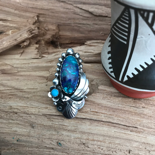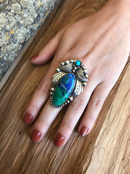 Bluebird Azurite with a Sleeping Beauty Wildflower Ring~Sterling Silver~ Artisan Handmade~ Size 10 ~ 1180